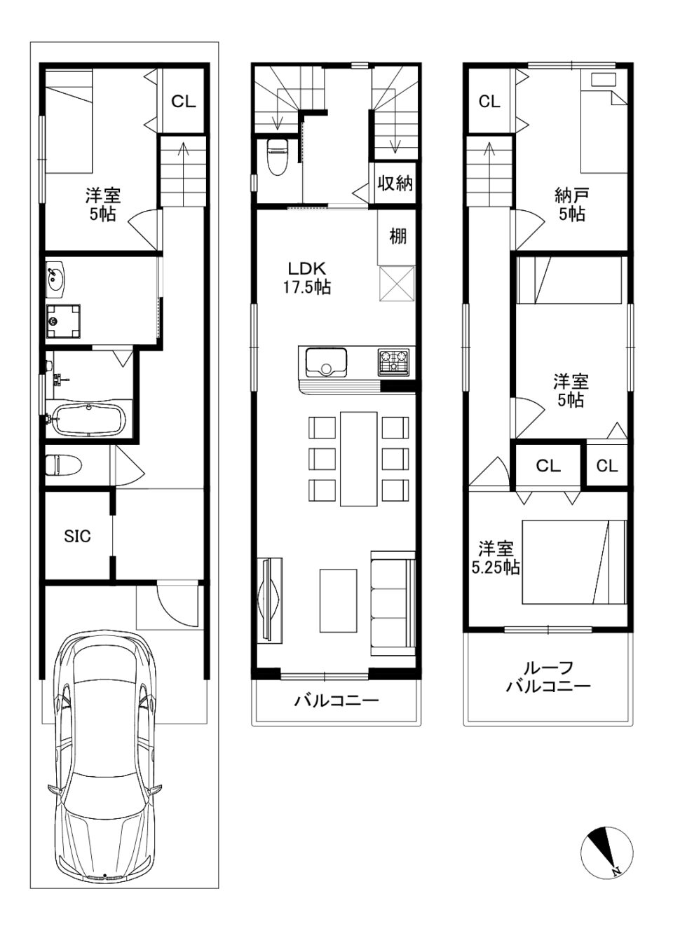 ・洗濯物を1度に干せる大きなルーフバルコニー。(画像:3階洋室)