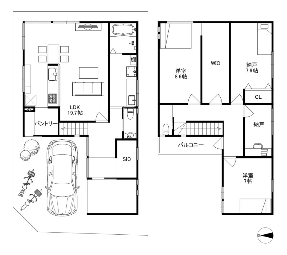 ・パントリー、SICやWICなど豊富な収納で お家全体をすっきりとお使いいただけます。